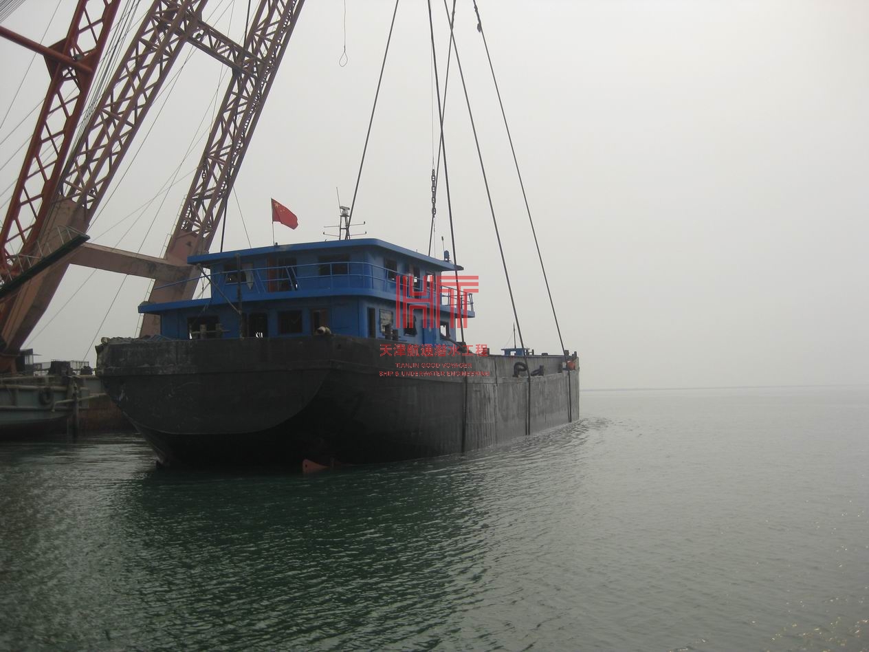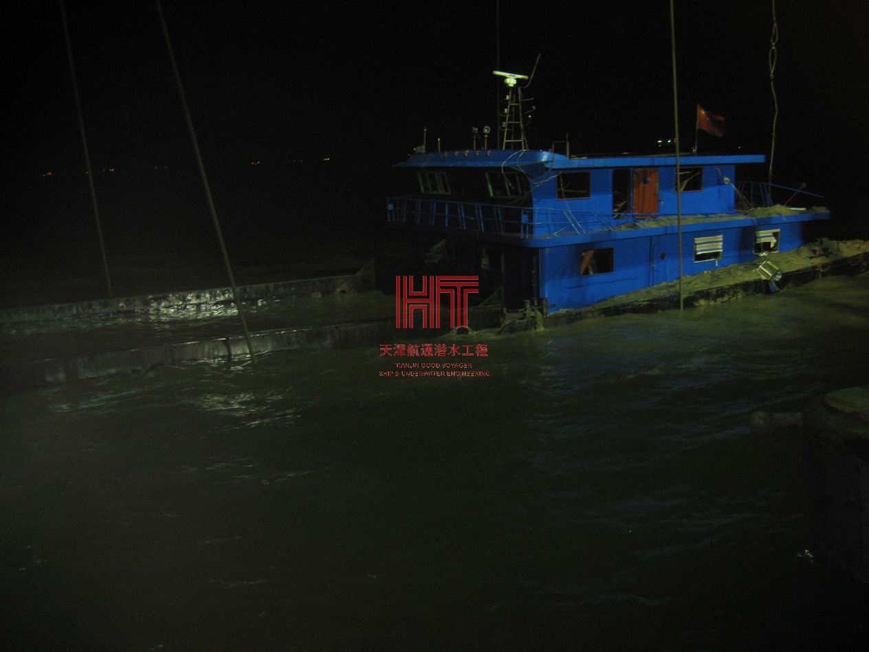 “兴昭2218”轮于天津港水域被撞后沉没,我公司接到通知对该船舶进行探摸,探摸明被撞位置制定可行打捞方案,及时完成打捞工作。