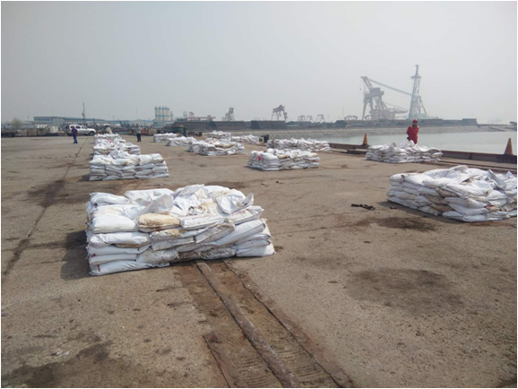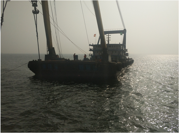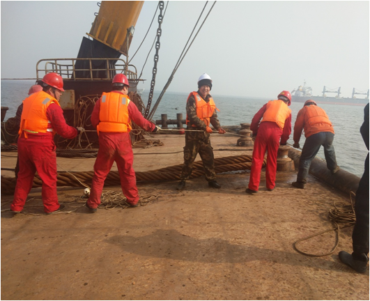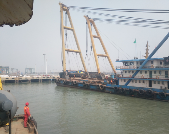 抵达建材码头,抛锚定位做吊装前准备