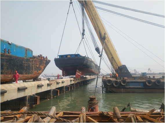 舯前部吊装上岸